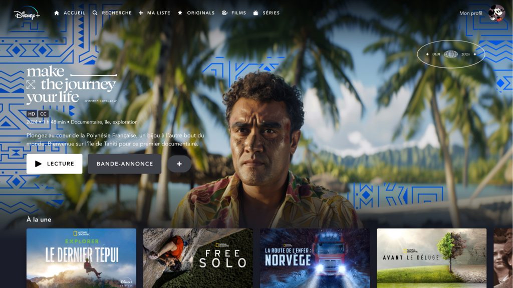 Ce projet de documentaire consacré à la Polynésie française m’a permis de concevoir une direction artistique complète, pensée pour traduire visuellement la richesse et l’identité de cet archipel au cœur du Pacifique. À partir d’un travail de recherche et d’inspiration autour des motifs traditionnels polynésiens, j’ai développé un univers graphique cohérent, en m’appuyant sur une palette de couleurs évoquant la diversité des paysages, entre lagons, végétation luxuriante et lumières naturelles. L’ensemble des assets visuels — motifs, textures, compositions graphiques et éléments narratifs — a été créé pour accompagner le documentaire et renforcer son immersion. Chaque détail a été pensé pour soutenir le récit, enrichir l’expérience visuelle et plonger le spectateur dans un univers à la fois authentique et évocateur. L’objectif de cette direction artistique était de proposer une expérience immersive forte, capable de valoriser la dimension culturelle, les ambiances et l’essence même de la Polynésie, tout en apportant une cohérence visuelle sur l’ensemble du projet.
