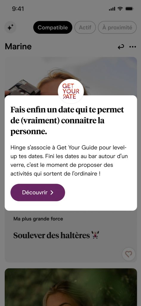 Création d'une fonctionnalité entre GetYourGuide et Hinge
