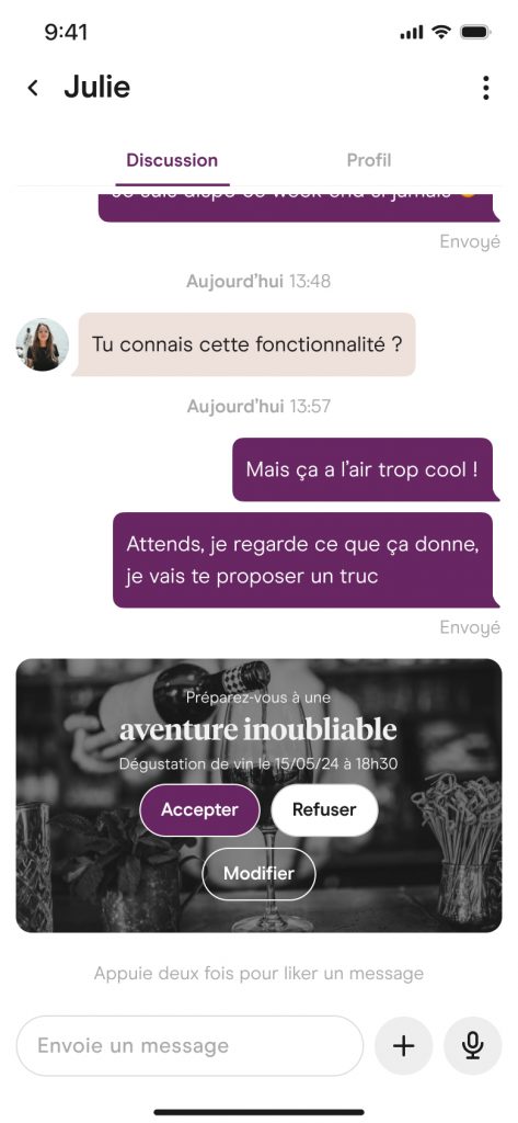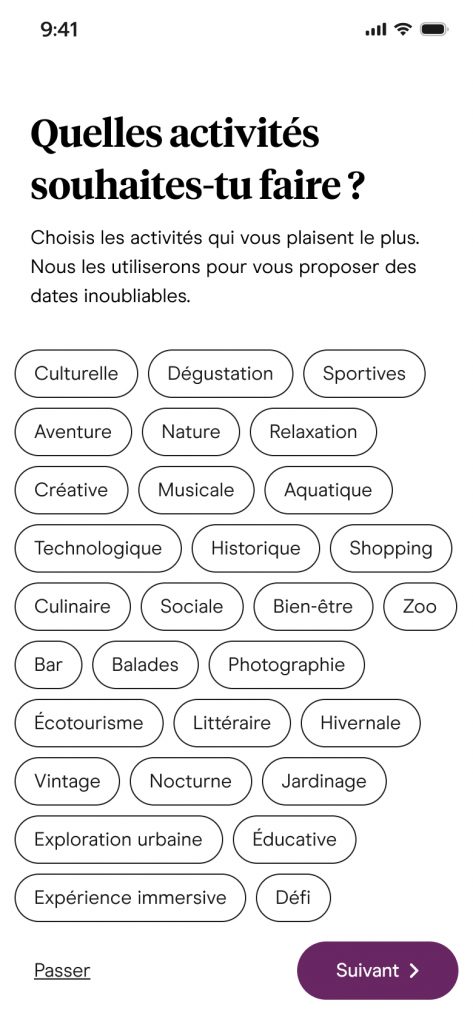 Faciliter des rencontres significatives et mémorables en combinant la magie de la rencontre avec la diversité des activités locales, permettant aux utilisateurs de tisser des liens plus profonds à travers des expériences originales et partagées. Nous promettons des rencontres authentiques et enrichissantes, où chaque rendez-vous devient une aventure inoubliable, créant des souvenirs précieux et des liens durables.