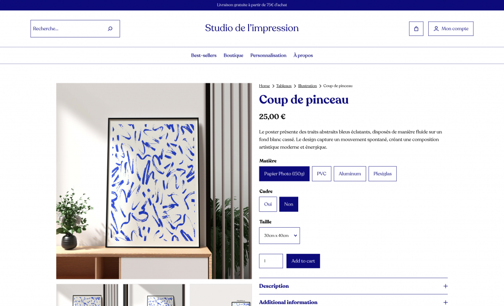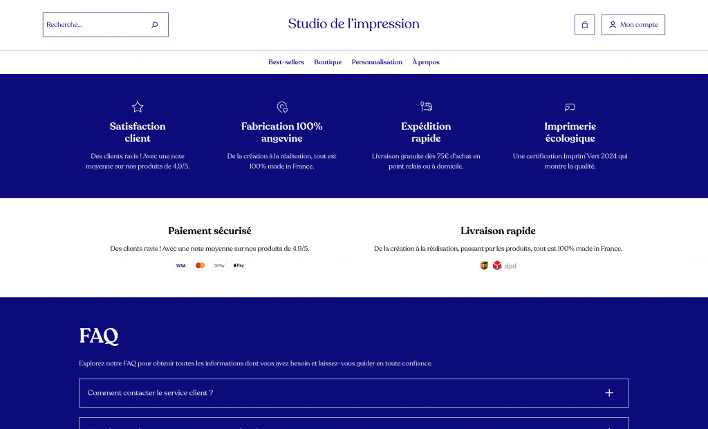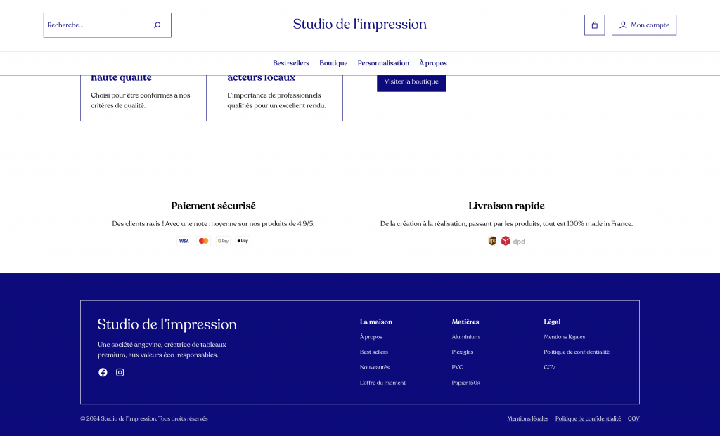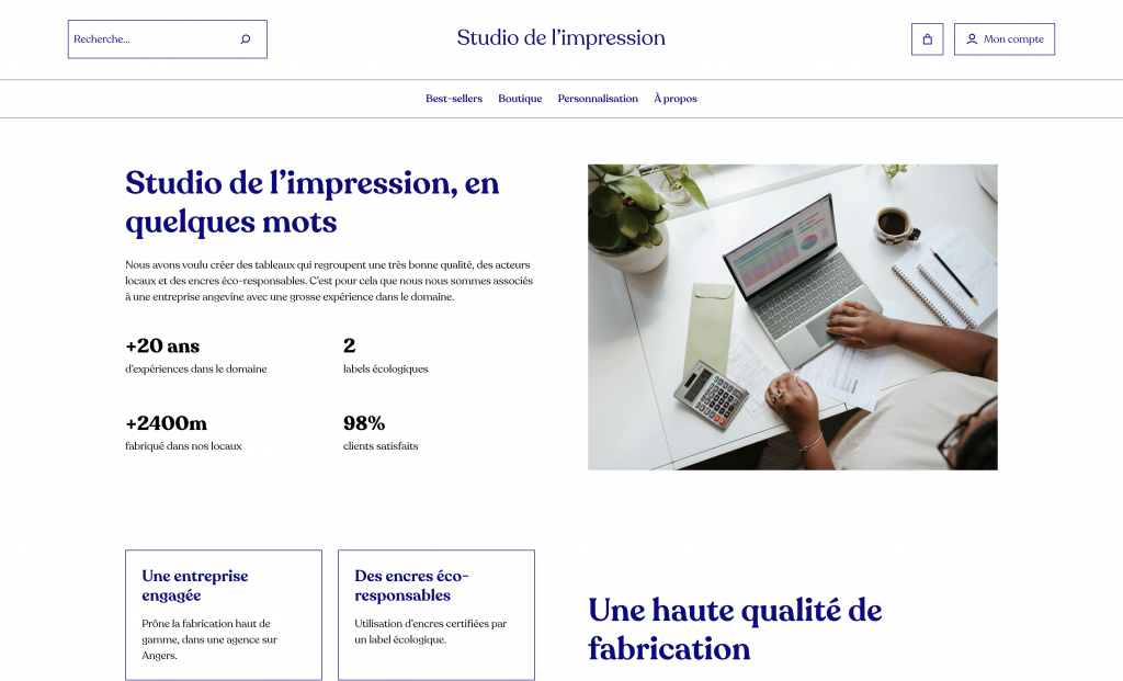 Création d'un site pour un service d’impression 100 % personnalisé, pensé pour les créatifs, marques et entreprises exigeantes. Formats, papiers, finitions : chaque détail est conçu sur mesure pour sublimer vos projets, sans compromis. Design par Mahina Studio et développé par Romain Bourdichon.